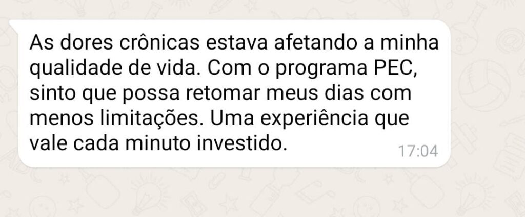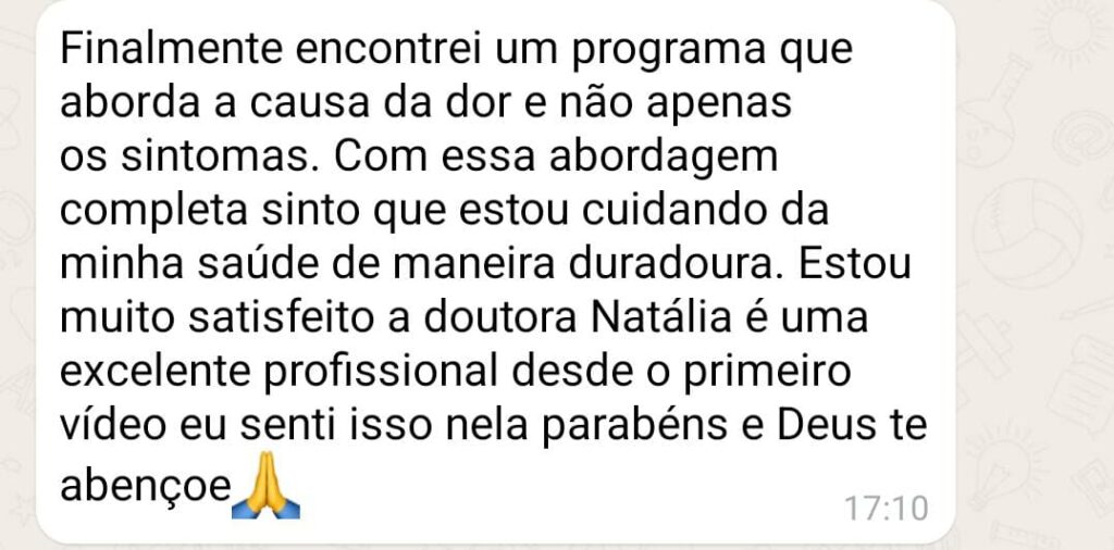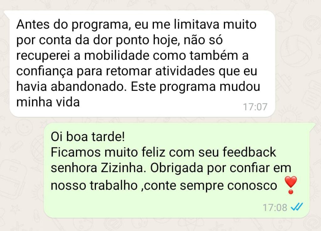 Cada pessoa tem um ritmo de recuperação diferente, mas muitos dos nossos alunos começam a sentir melhorias nas primeiras semanas de prática, com redução da dor e aumento da mobilidade. O importante é seguir o programa e ter disciplina.